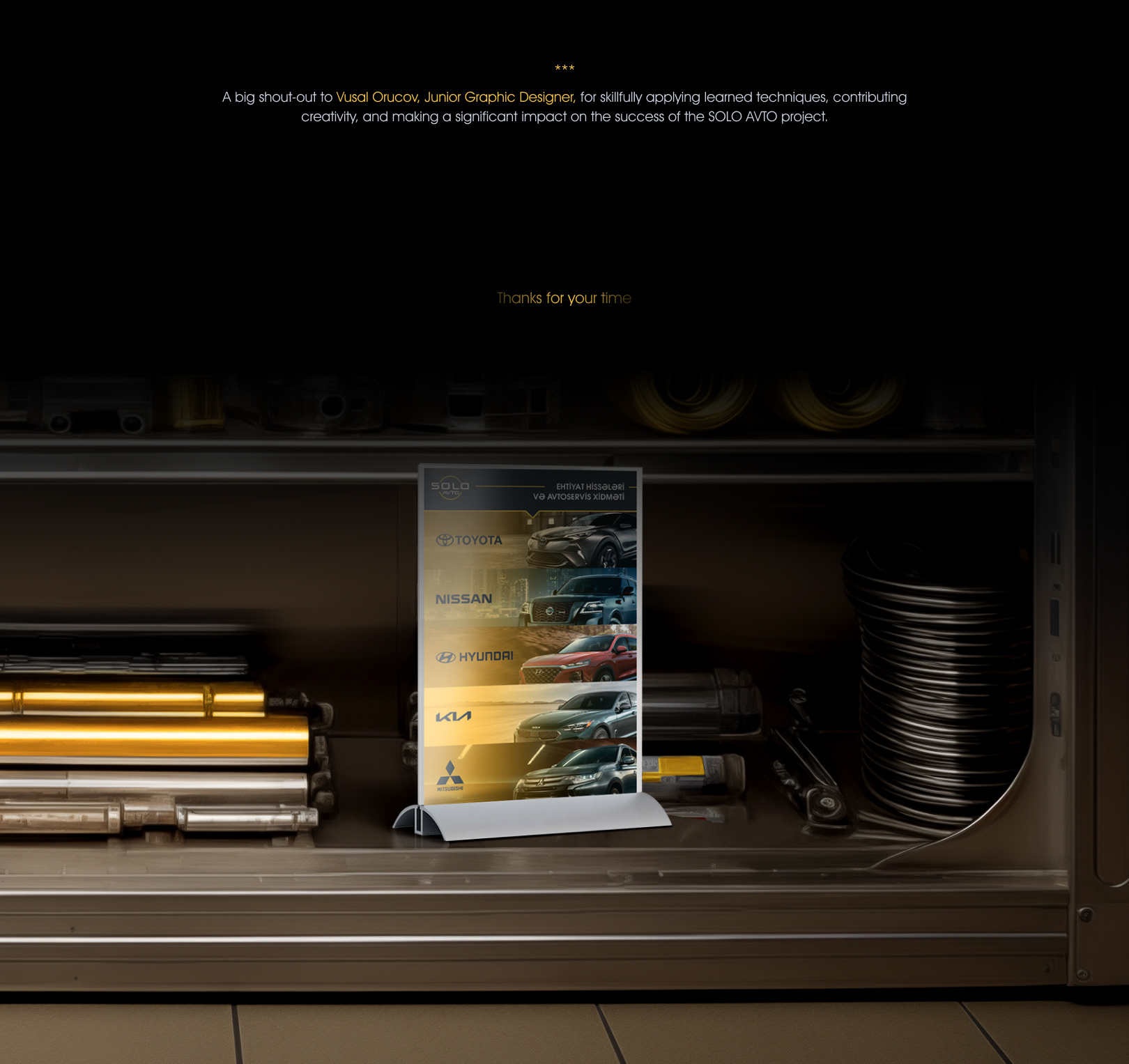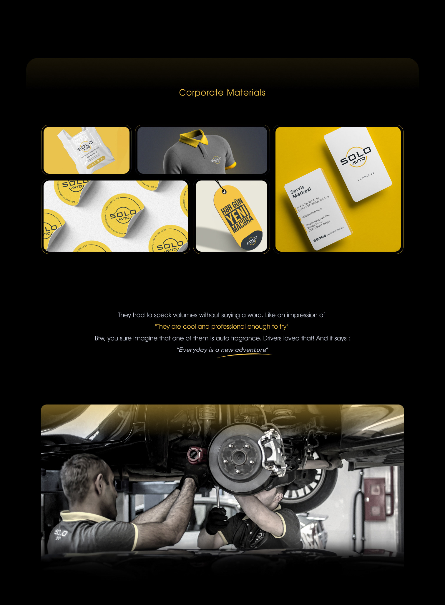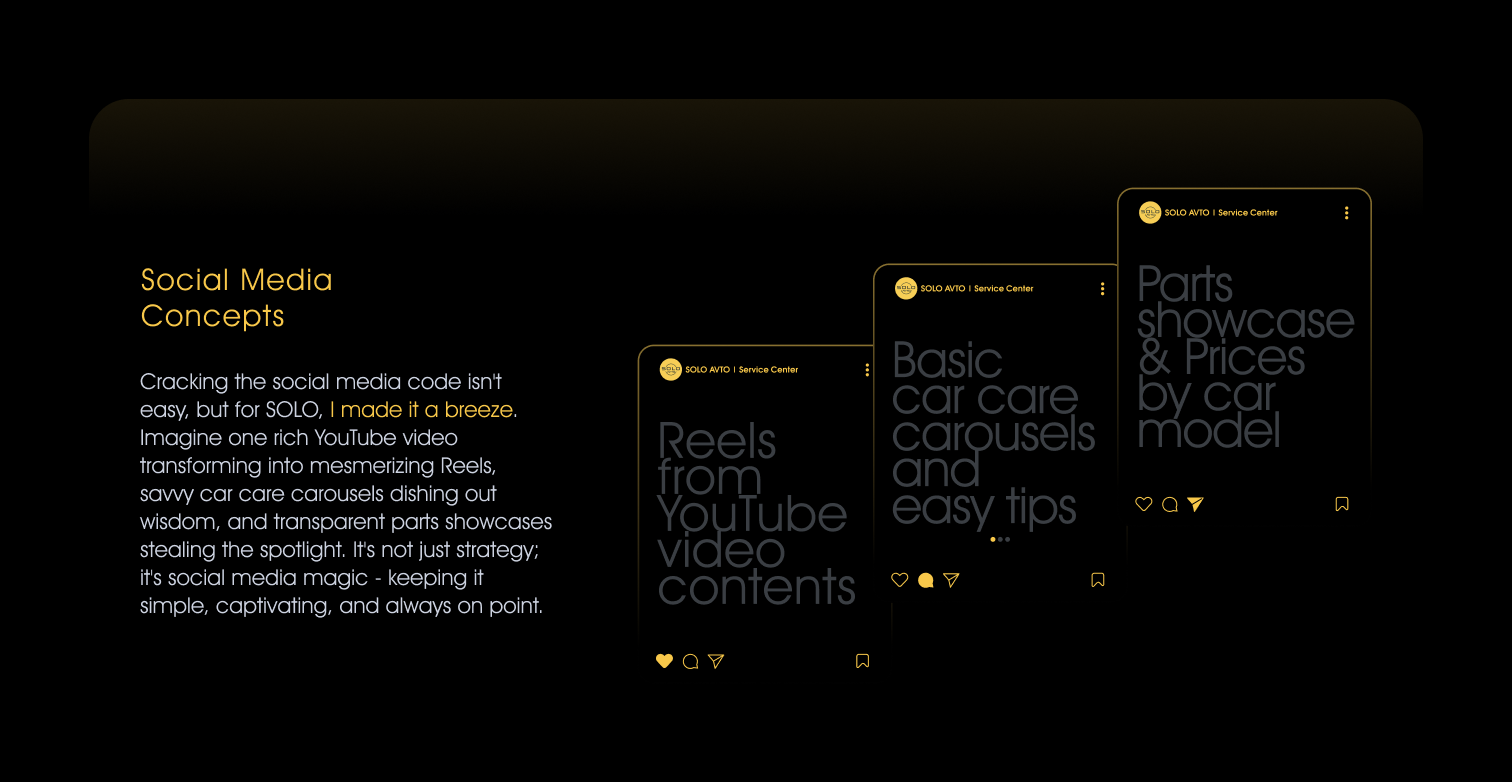 As a Design Consultant & Art Director at SOLO AVTO, I crafted a brand identity, assembled a creative team, and brought a unique vision to life from scratch.